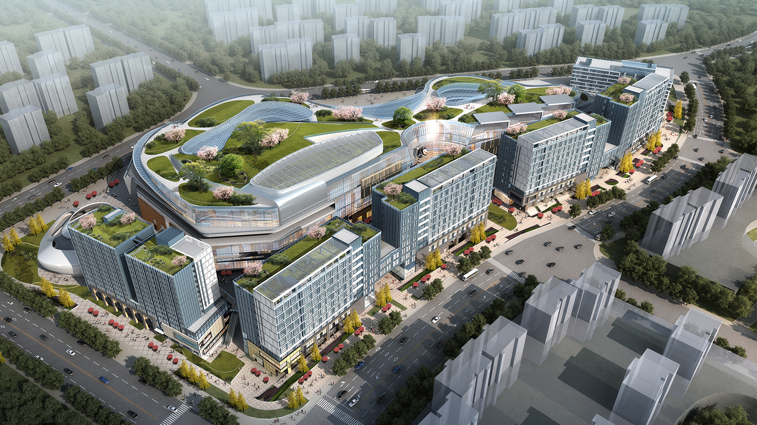項目規(guī)模:項目總用地面積為7.75萬平米,總建筑面積約38萬平方米,容積率為3.8。